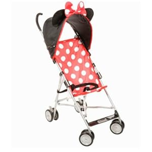 For a child up to 40 lbs 3-point safety harness Easy, compact fold Lightweight frame Fun Minnie Mouse theme